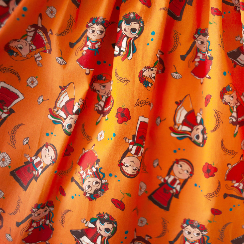 Objevte prvotřídní kvalitu našich nejnovějších dívčích šatů zdobených podmanivými ilustracemi, které bravurně zachycují bohaté kulturní dědictví východní Evropy. Obléknutím těchto šatů vklouzne vaše holčička do víru dějin a může se nechat unášet příběhy a krásou pestrých ukrajinských trad ic skrze vyobrazení dívek v národních krojích. Takže, až se vaše holčička bude točit v šatech zdobených vyobrazeními dívek v krojích, přijměte pozvání k oslavám jejich bohatého kulturního dědictví a pestrých tradic. Spolu s šaty se vaše dítě přenese do víru dění a začne se psát nová kapitola těchto dechberoucích příběhů.